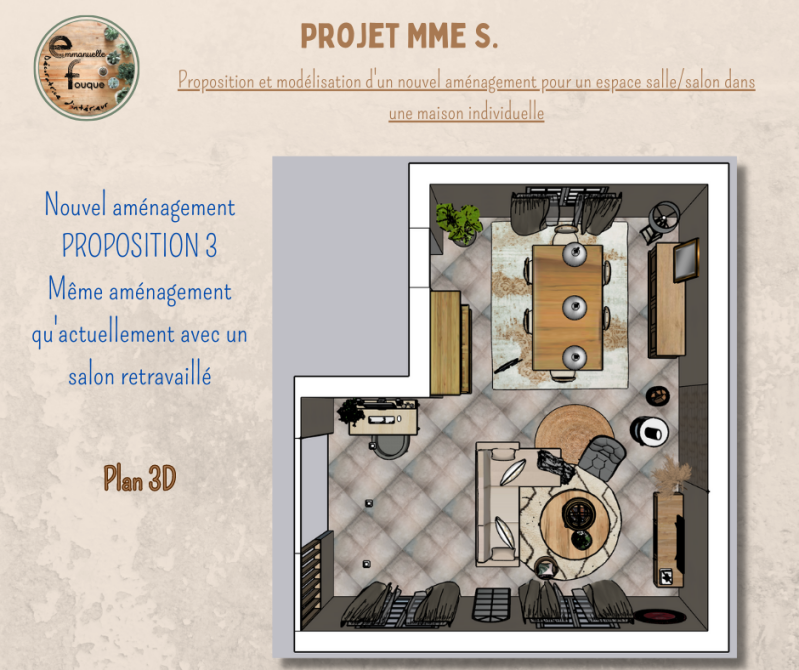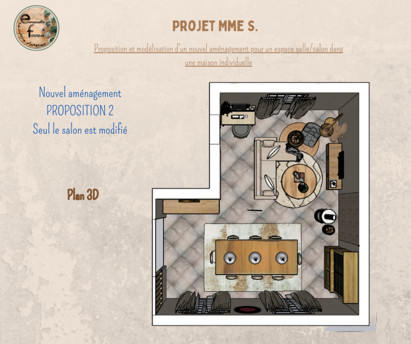 On y retrouve les matériaux et coloris retenus ainsi que des objets déco et mobilier adaptés...